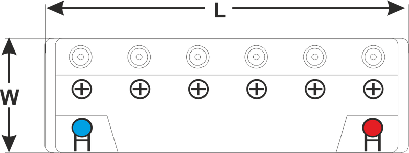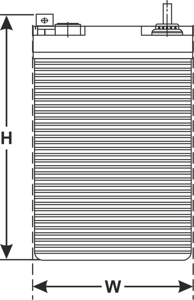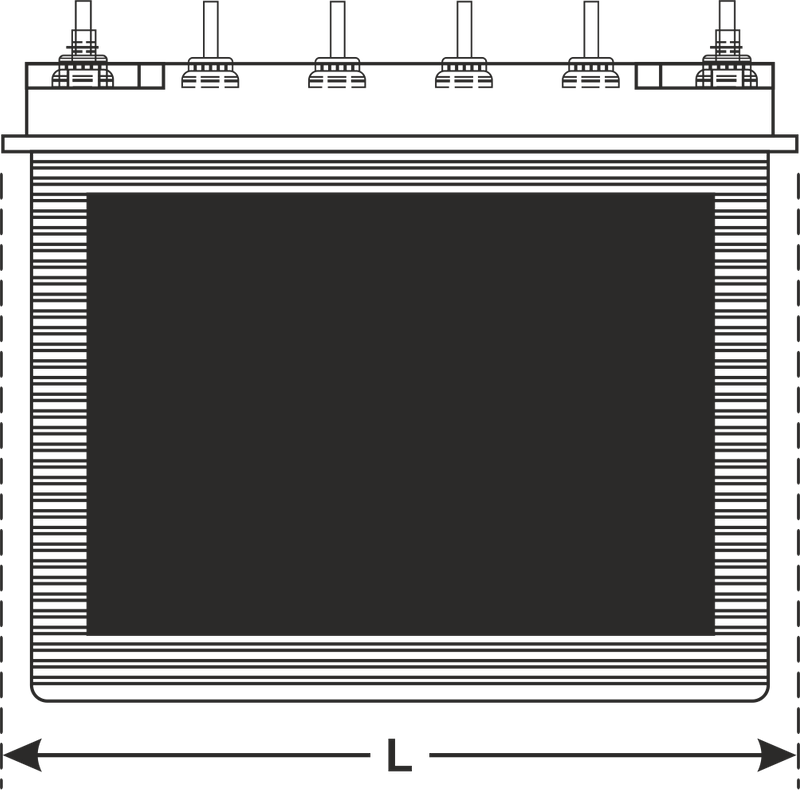 Dimensions ± 3 mm (mm) | Electrolyte Volume in Ltr. | Charging Current in (Amp.) |